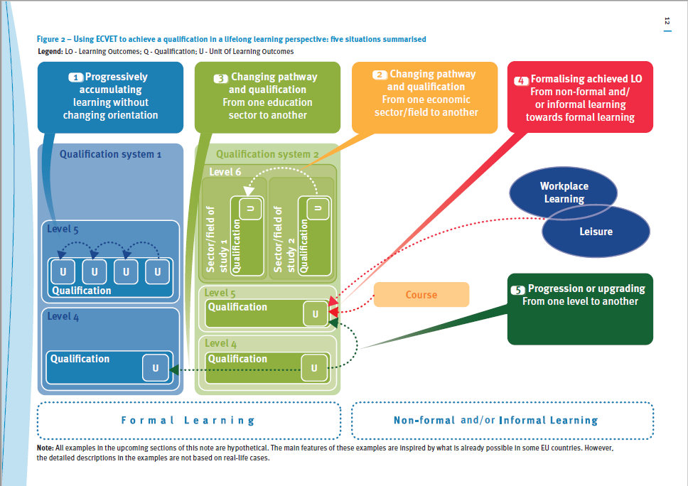 Five situations can be distinguished in how ECVET can be used in a lifelong learning perspective:
